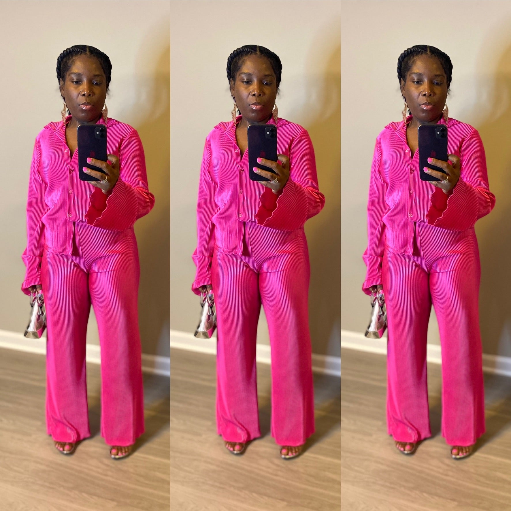 Casual Long Sleeve Ribbed Button Top Pant Set