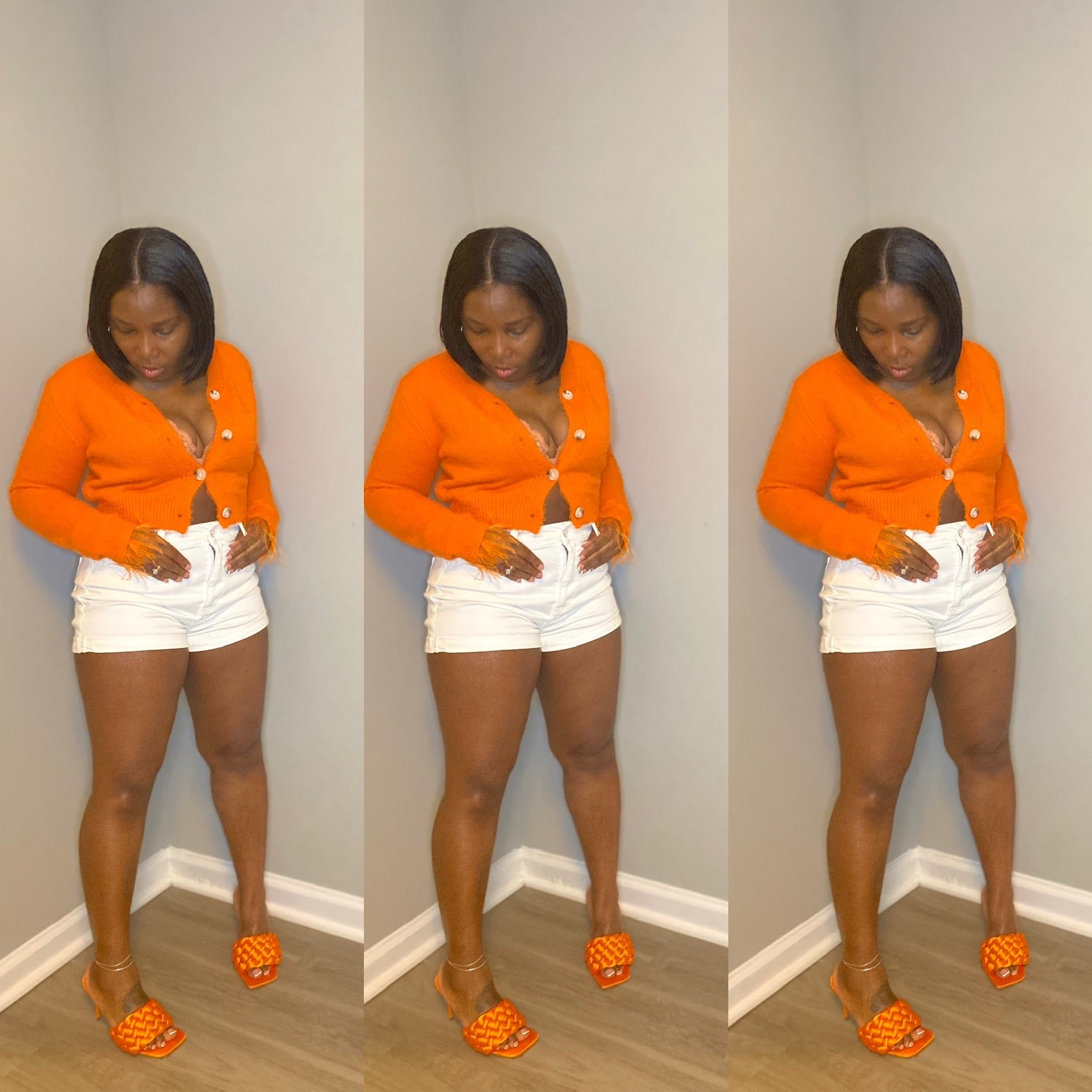 Long Sleeve Feather Knit Crop Top Button Up Sexy Cardigan Sweater