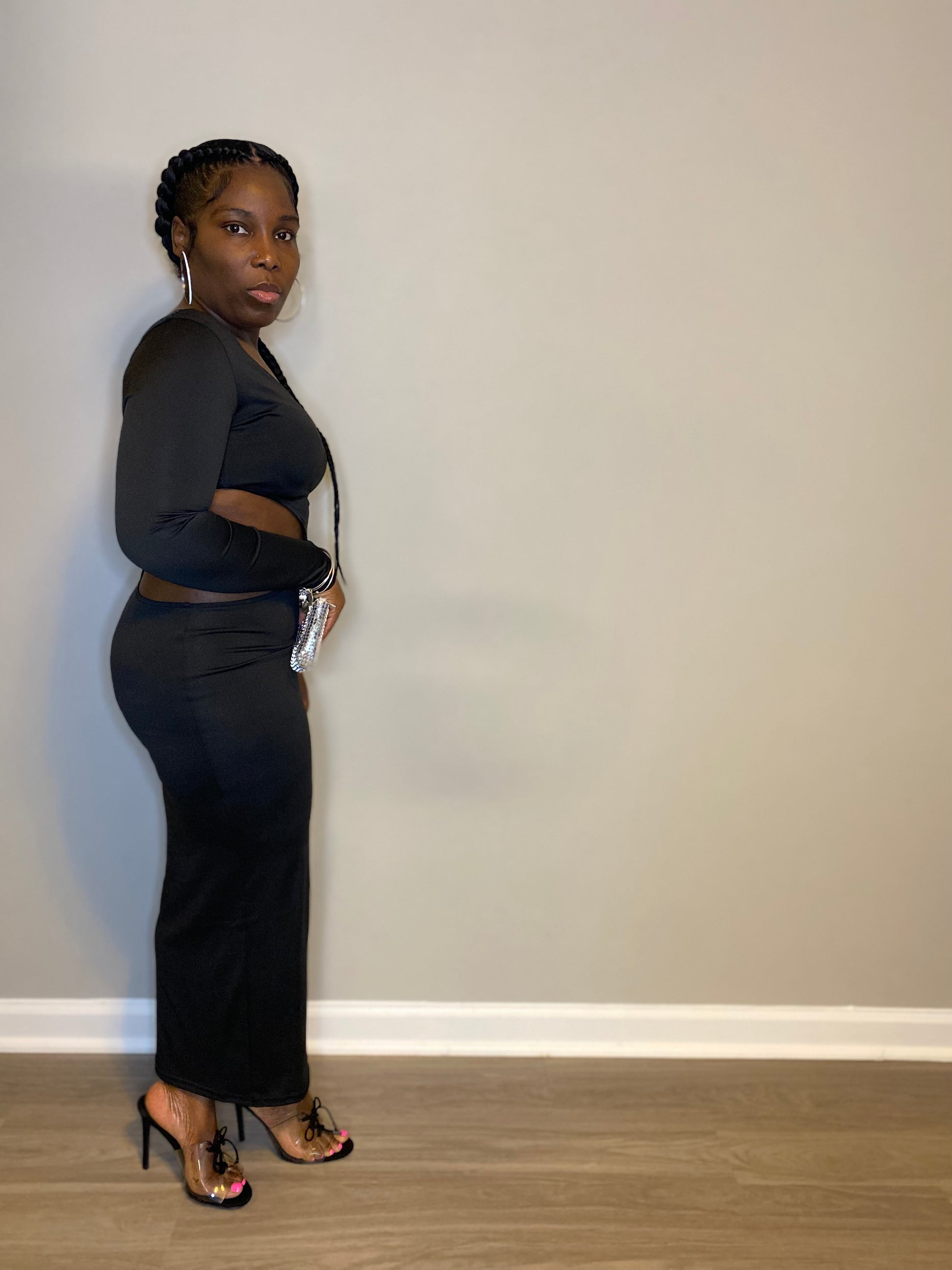 Long Sleeve Asymmetrical• Side Hollow Out•Casual Bodycon Dress•Full Length