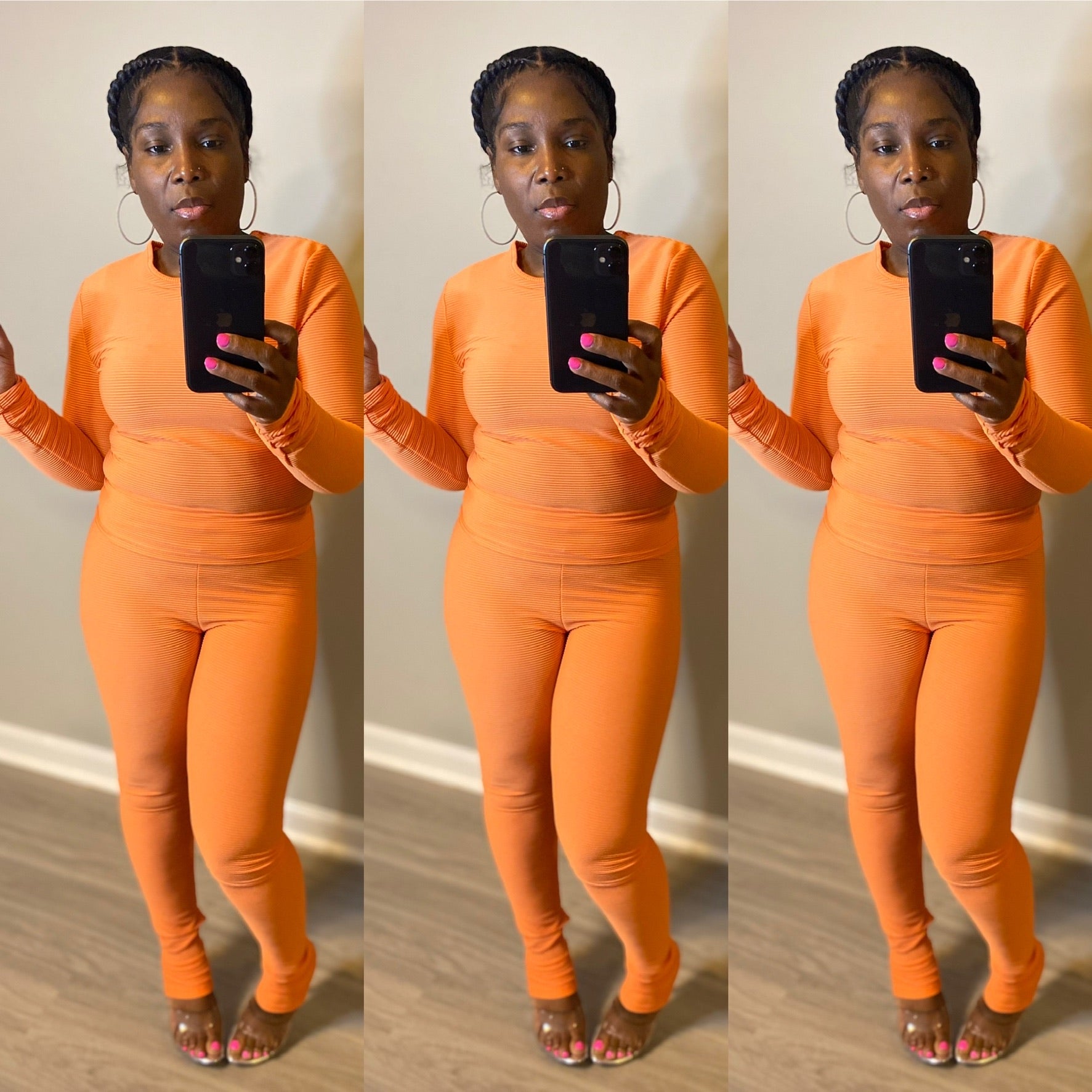 Solid Long Sleeve O Neck Two Piece Legging’s Set