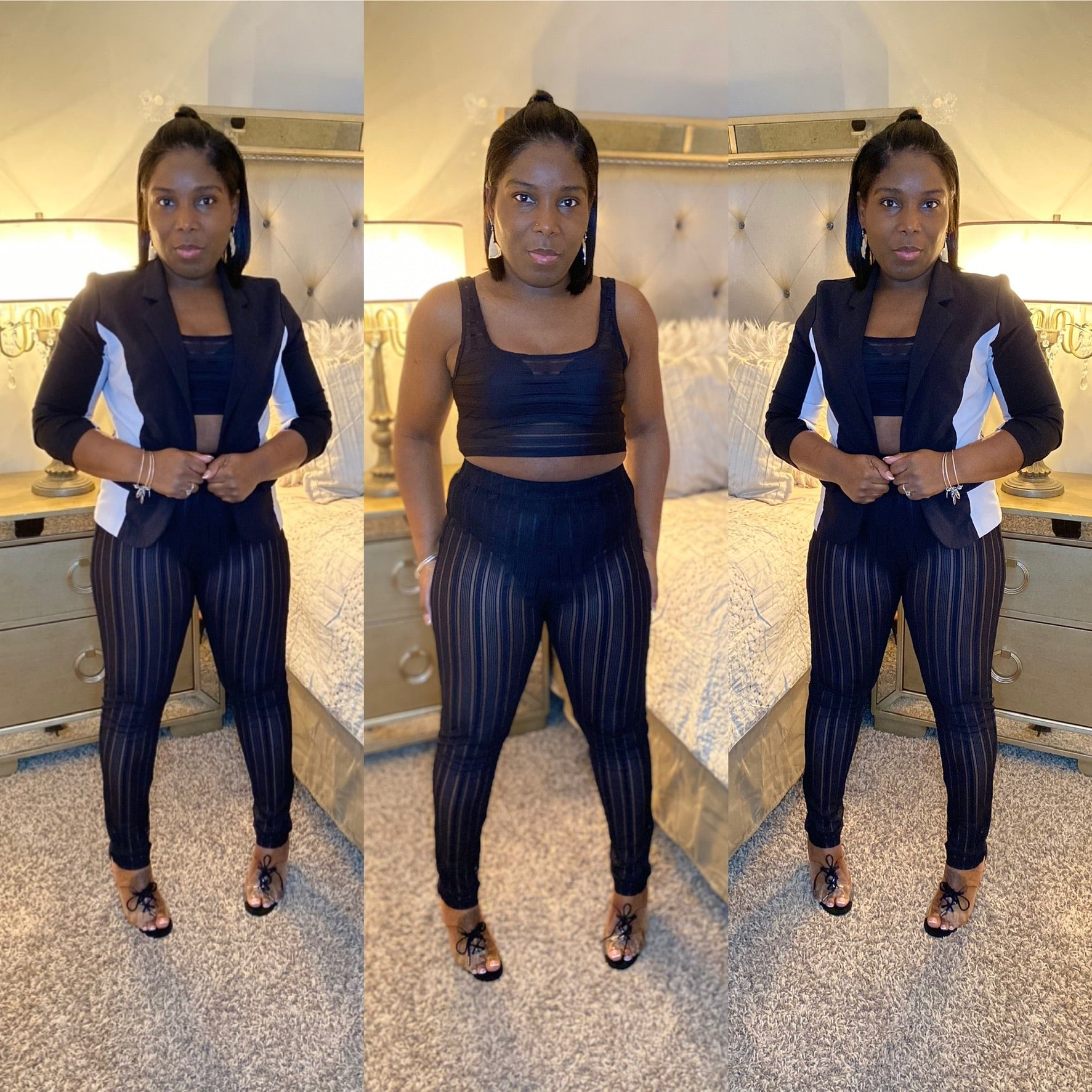 Mesh Two Pieces Crop Top Set • Blazer Not Included