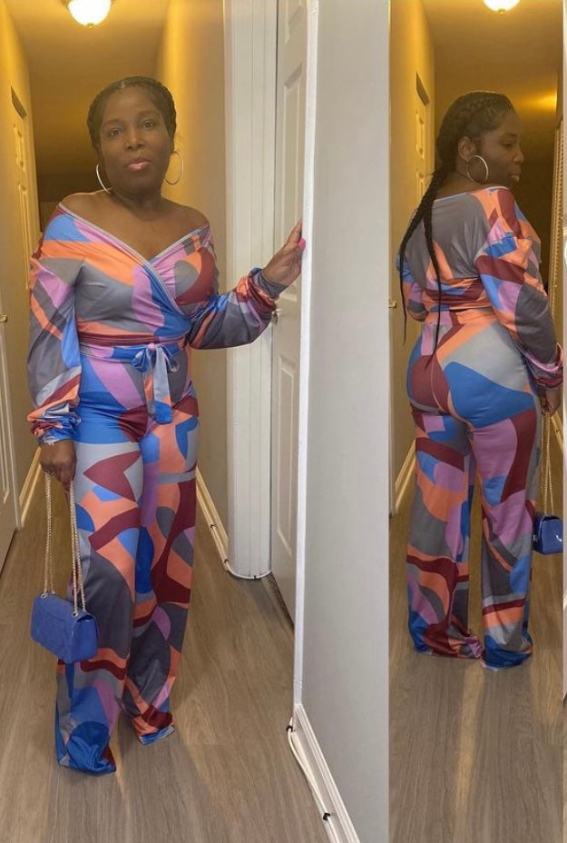 Long Sleeve Tie V-Neck Casual Chic Two Piece Pant Set