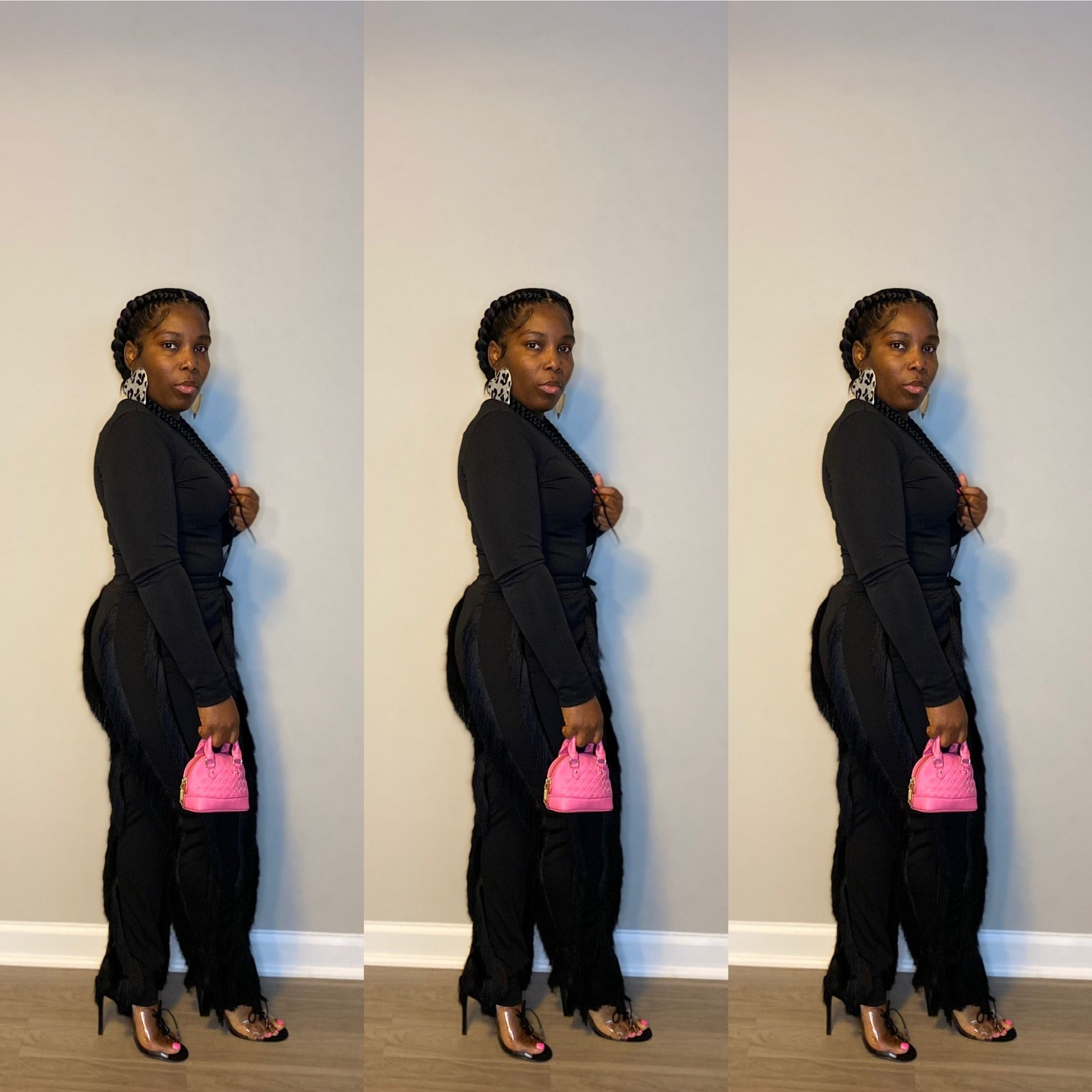 Long Sleeve Bodysuit Two Piece Fringe Pant Set